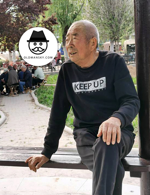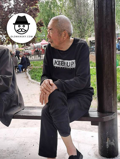 White short hair old man sat to talk in the pavilion